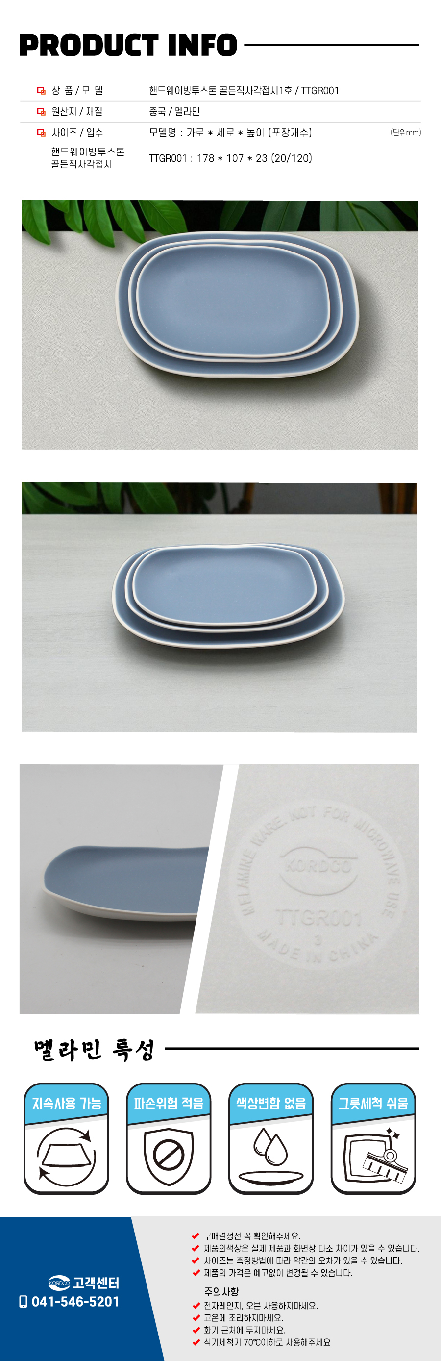 핸드웨이빙 투스톤(블루도트) 골든직사각접시시리즈